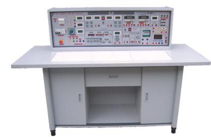 2、示教控制臺(tái):由示教實(shí)驗(yàn)操作桌、實(shí)驗(yàn)臺(tái)、演示控制屏組成,能分別控制12臺(tái)學(xué)生實(shí)驗(yàn)臺(tái)的電源。演示屏立在實(shí)驗(yàn)臺(tái)上,尺寸為160×70cm,用于講解、演示。