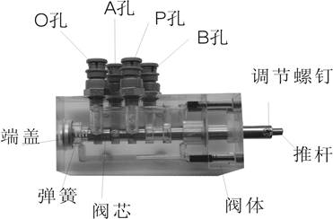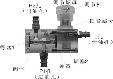 2、減壓閥結(jié)構(gòu)上參考了國(guó)產(chǎn)J-10B型低壓直動(dòng)減壓閥,其閥體、閥蓋、鎖緊螺母、調(diào)節(jié)螺母、螺塞等采用了進(jìn)口透明有機(jī)玻璃材料精制而成,閥芯、調(diào)節(jié)桿采用了45#中碳鋼材料。并配合彈簧,油接頭,密封圈等標(biāo)準(zhǔn)件裝配而成,通過(guò)它可明確地觀察到閥芯、彈簧、油孔等結(jié)構(gòu)及其運(yùn)行過(guò)程,具有形象逼真,性能可靠等優(yōu)點(diǎn)。它既可作為教學(xué)模型,也可作為液壓實(shí)驗(yàn)元件進(jìn)行實(shí)驗(yàn)演示。