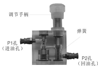 2、溢流閥結(jié)構(gòu)上參考了國(guó)產(chǎn)P-63B型低壓直動(dòng)式溢流閥,其閥體、閥蓋、鎖緊螺母、調(diào)節(jié)螺母、螺塞等采用了進(jìn)口透明有機(jī)玻璃材料精制而成,閥芯、調(diào)節(jié)桿采用了45#中碳鋼材料。并配合彈簧,油接頭,密封圈等標(biāo)準(zhǔn)件裝配而成,通過(guò)它可明確地觀察到閥芯、彈簧、油孔等結(jié)構(gòu)及其運(yùn)行過(guò)程,具有形象逼真,性能可靠等優(yōu)點(diǎn)。它既可作為教學(xué)模型,也可作為液壓實(shí)驗(yàn)元件進(jìn)行實(shí)驗(yàn)演示。