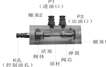 4、使用時(shí)應(yīng)注意:P1孔為進(jìn)油孔,P2孔為出油孔,K為控制油孔,不允許接錯(cuò)。