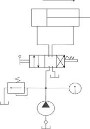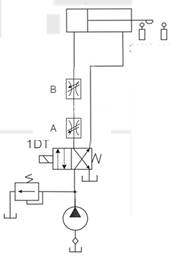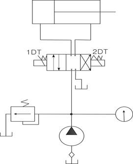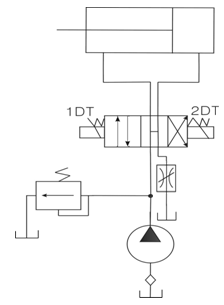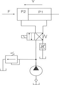 雙作用油缸,二位四通電磁閥,溢流閥,調(diào)速閥