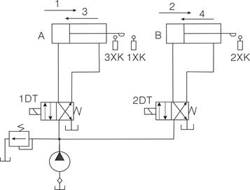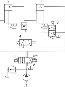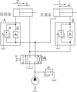 采用電器行程開(kāi)關(guān)的順序動(dòng)作回路,各缸順序由電氣線路保證改變電氣線路即可改變順序動(dòng)作,并且調(diào)整行程,也比較方便。但這種回路的可靠性取決于電器元件,電氣線路比較復(fù)雜。