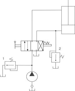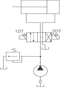 雙作用油缸,二位四通電磁閥,溢流閥,壓力繼電器