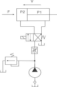 采用定量泵供油,由流量閥改變進(jìn)入執(zhí)行元件的流量來(lái)實(shí)現(xiàn)調(diào)節(jié)執(zhí)行元件速度。把流量控制閥裝在執(zhí)行元件的進(jìn)油路上,稱為進(jìn)油節(jié)流調(diào)速回路。