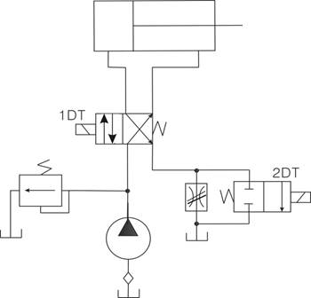雙作用油缸,二位二通電磁閥,二位四通電磁閥,溢流閥,調(diào)速閥