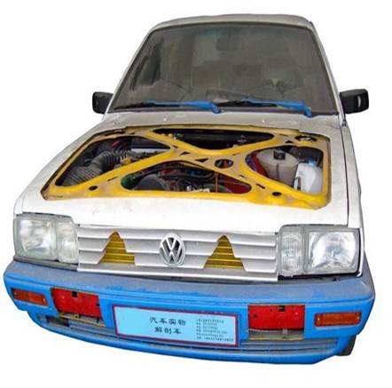 多功能解剖車選用桑塔納2000為基礎(chǔ),可容易地看見發(fā)動(dòng)機(jī)艙、車身側(cè)圍的構(gòu)造結(jié)構(gòu)、鋼板的厚 度及獨(dú)立懸掛的結(jié)構(gòu),甚至車輪的輪轂及輪胎的橫截面。此外,車內(nèi)方向盤、排擋桿、手剎、安全帶固定裝置及安全帶卷等平時(shí)都被包裹嚴(yán)實(shí)的部件也被特別地一剖為二,內(nèi)部工藝精度、構(gòu)造清晰呈現(xiàn),能夠展示汽車各總成裝置以及各附件位置。